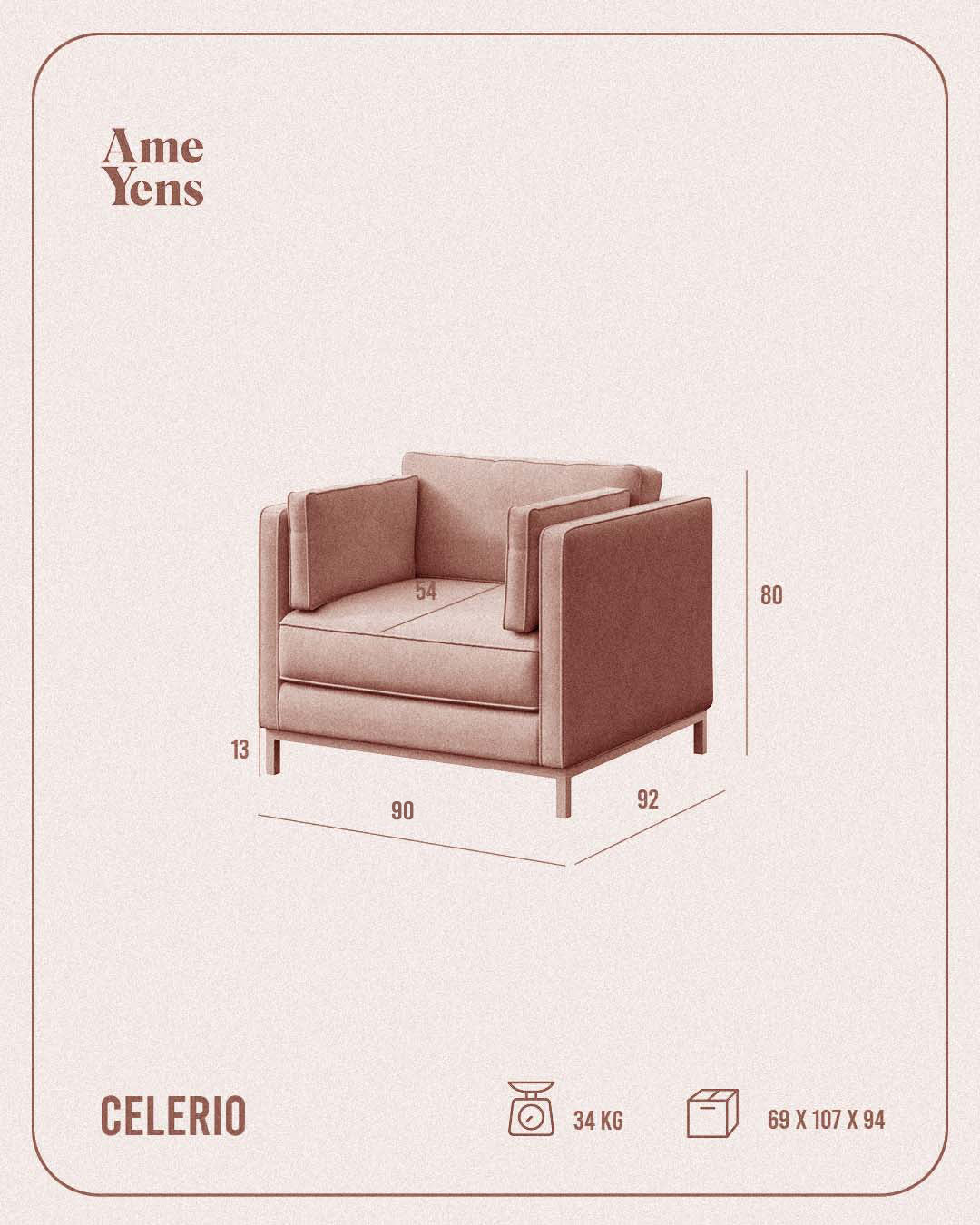 Le fauteuil de la collection CELERIO arbore une forme minimaliste et élégante. De plus, associé à un canapé de la même collection, il forme un ensemble harmonieux qui complète parfaitement la décoration du salon.