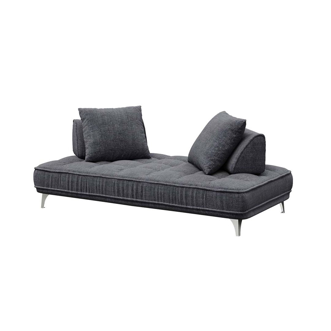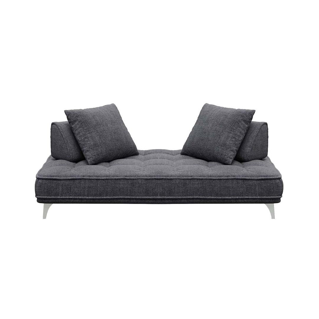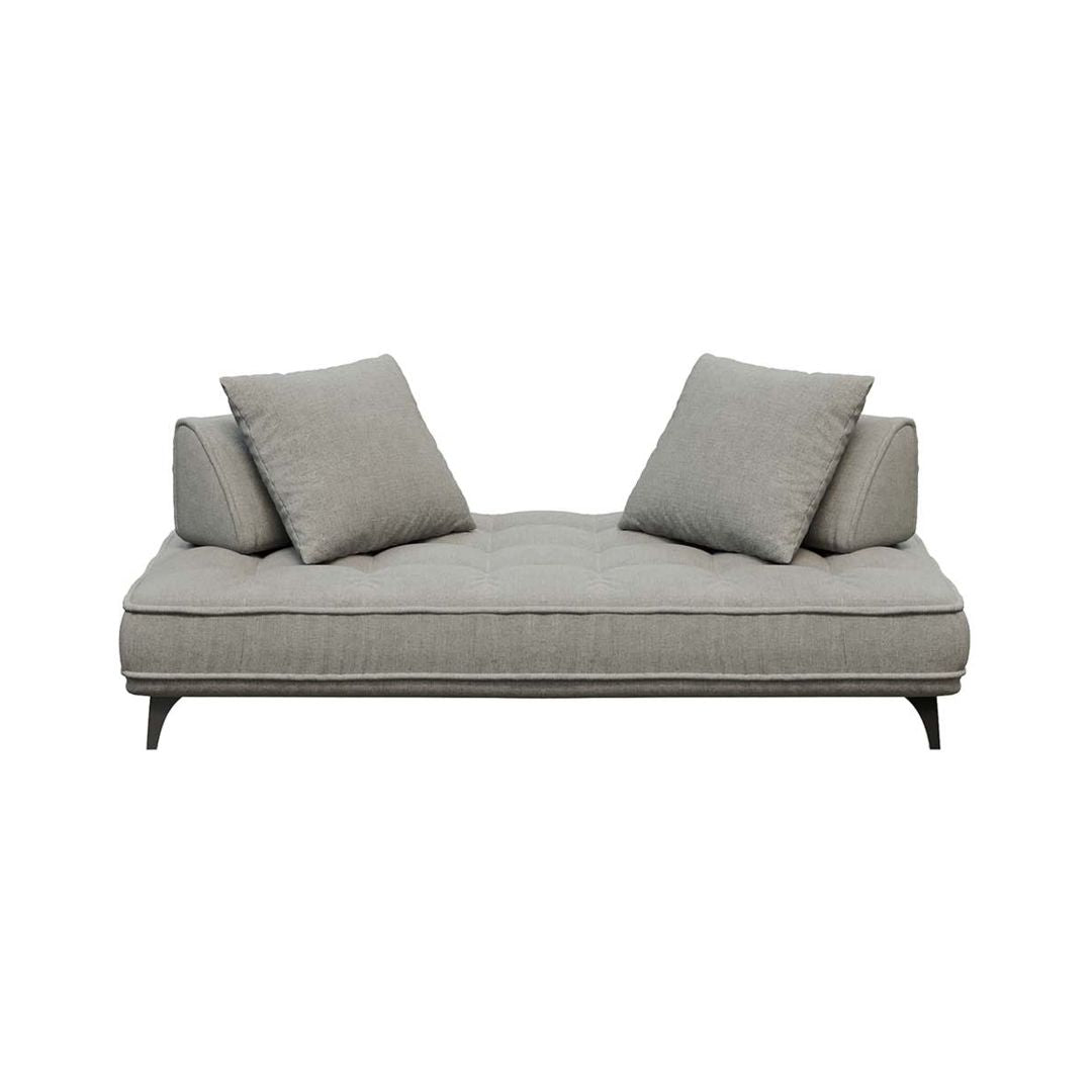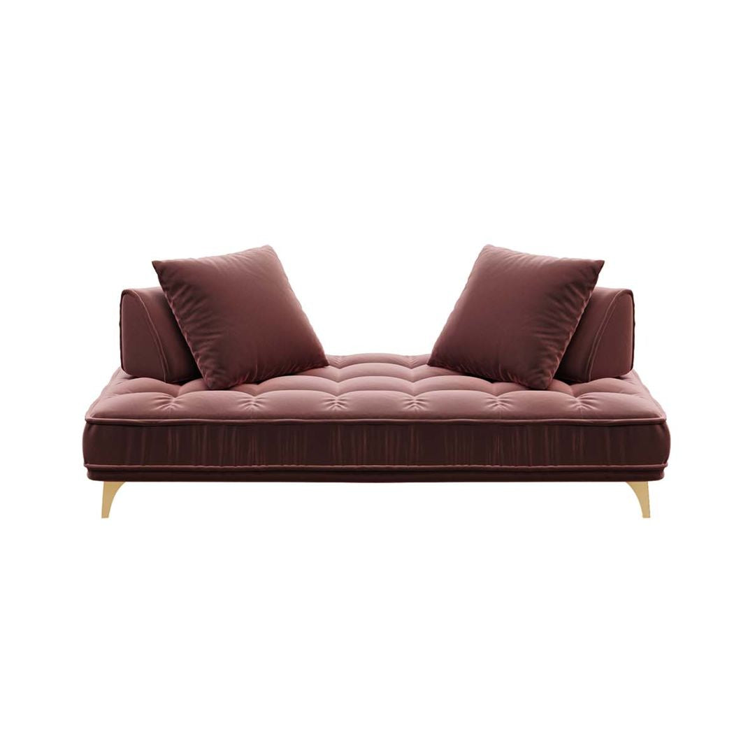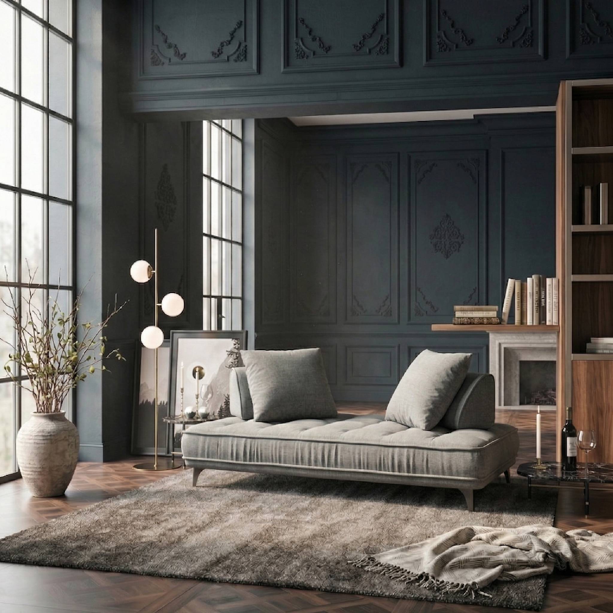 La méridienne Chloe a une forme unique, soulignée par une bordure exclusive et une assise entièrement capitonnée. Elle crée du caractère et réchauffe l'intérieur. Chloe est un meuble plein de luxe dans chaque détail, dont la légèreté est apportée par des pieds en acier contournés dorés. Elle remplit parfaitement la fonction de canapé et de lit de jour confortable.