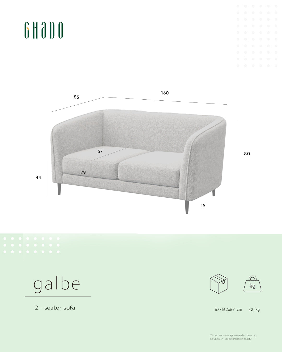 The Galbe 2-seater sofa is a perfect blend of modern elegance and compact functionality, ideal for small living spaces. With its sleek, curved design and soft upholstery, it adds a touch of sophistication to any room. The sofa provides exceptional comfort and support, making it perfect for relaxing after a long day. Its sturdy construction ensures durability, while the minimalist black legs give it a contemporary edge. Transform your apartment into a stylish retreat with the versatile and chic Galbe sofa.