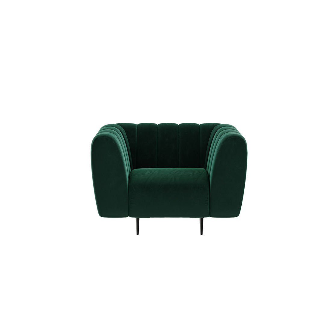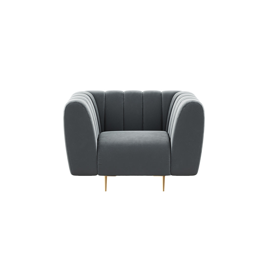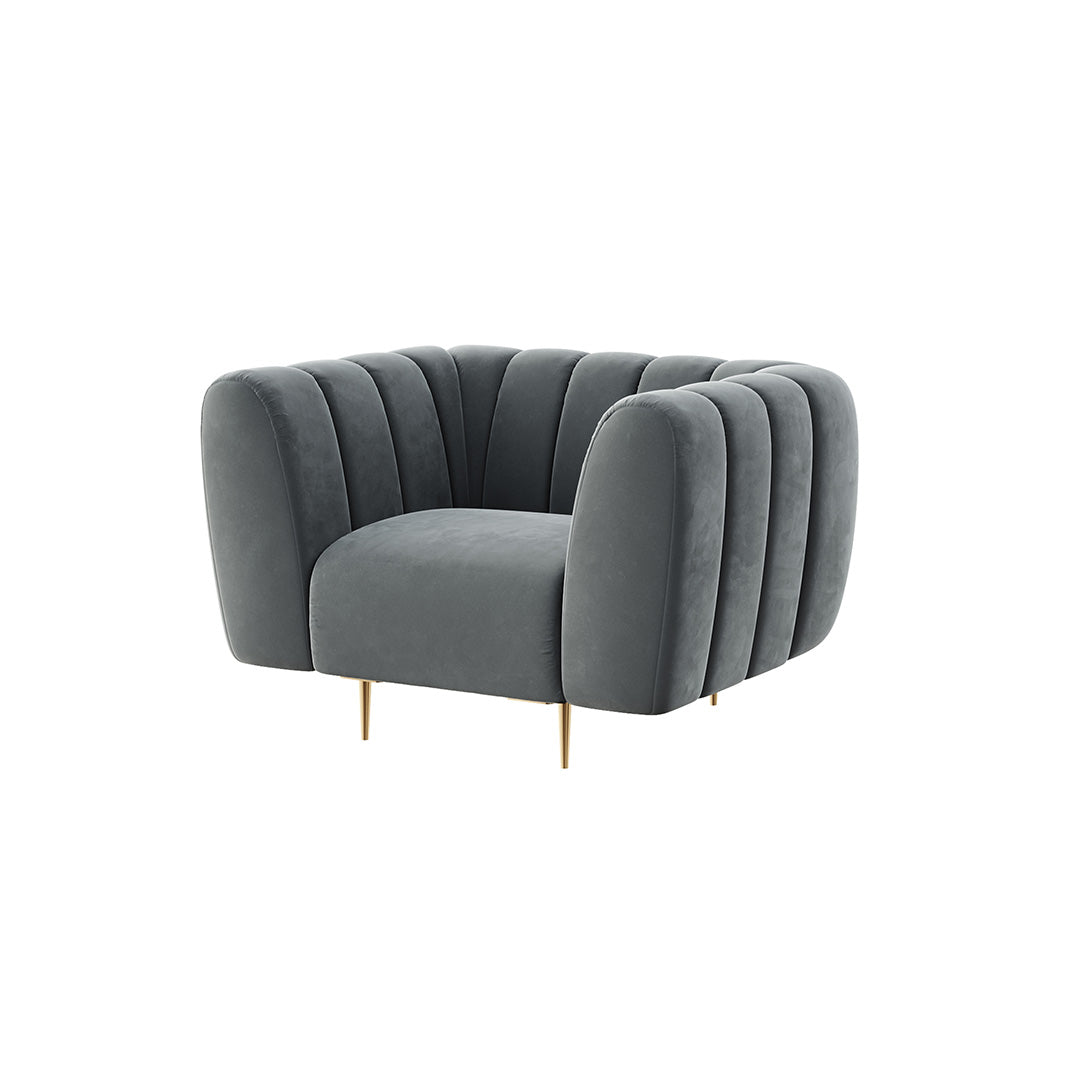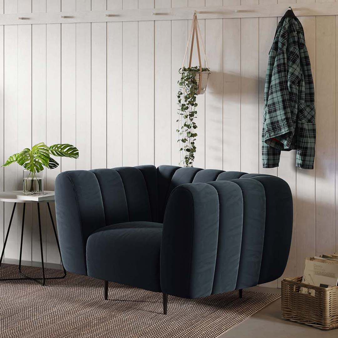 Shel is a fancy sofa that stands out thanks to the vertical tufting in the back and armrests while thin metal legs contrast with a comfy massive seat. Ghado fabric selection goes well with simple scandi interiors but at the same time, glamour velvets make it a perfect sofa for elegant designs.