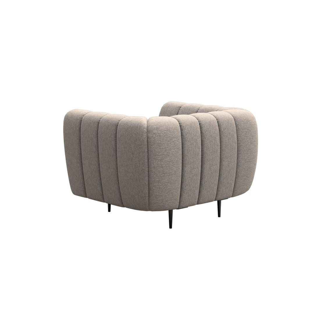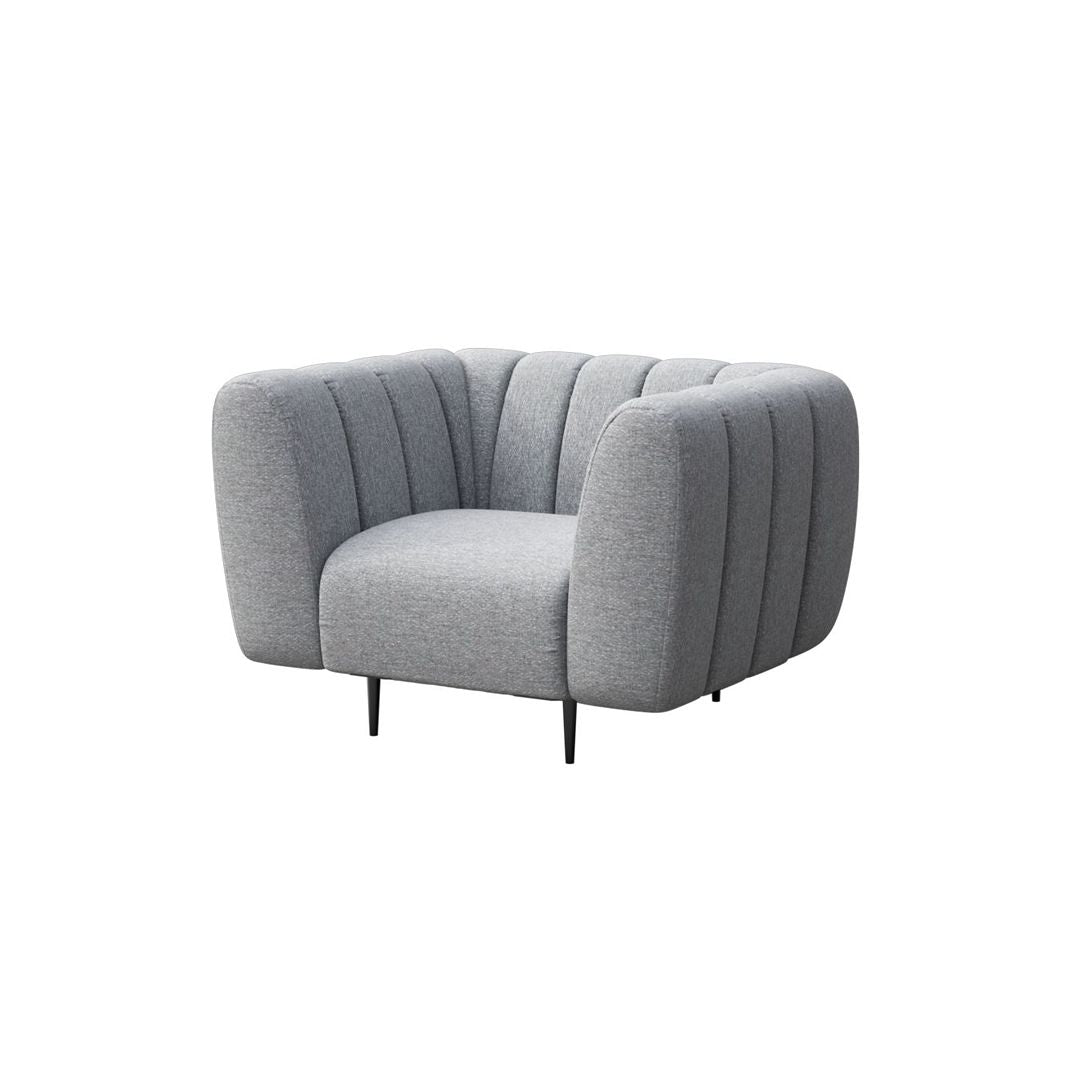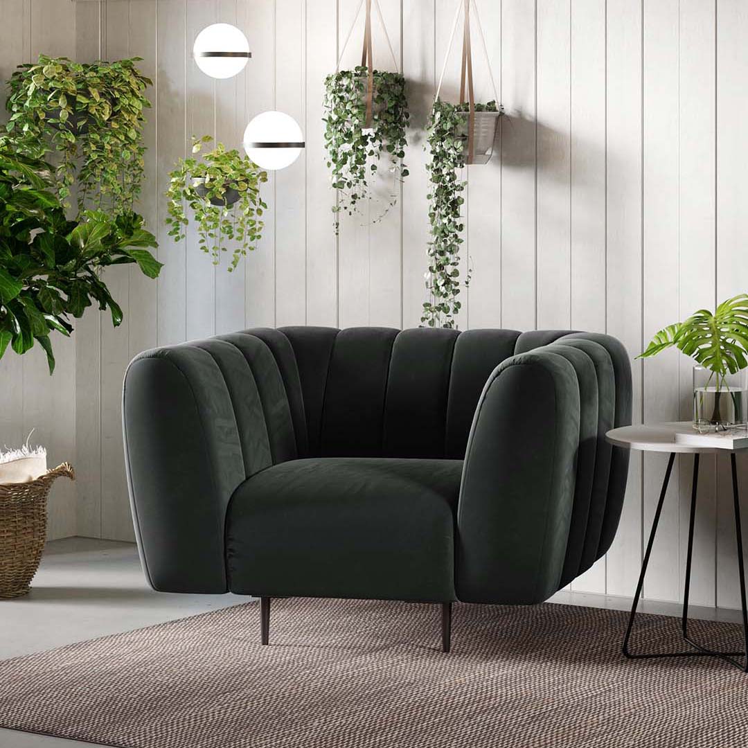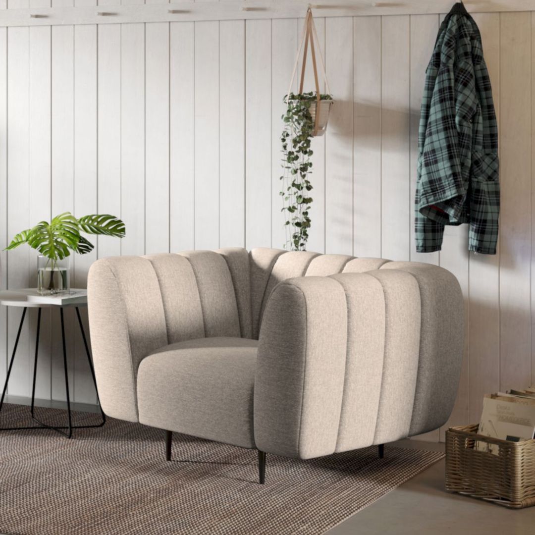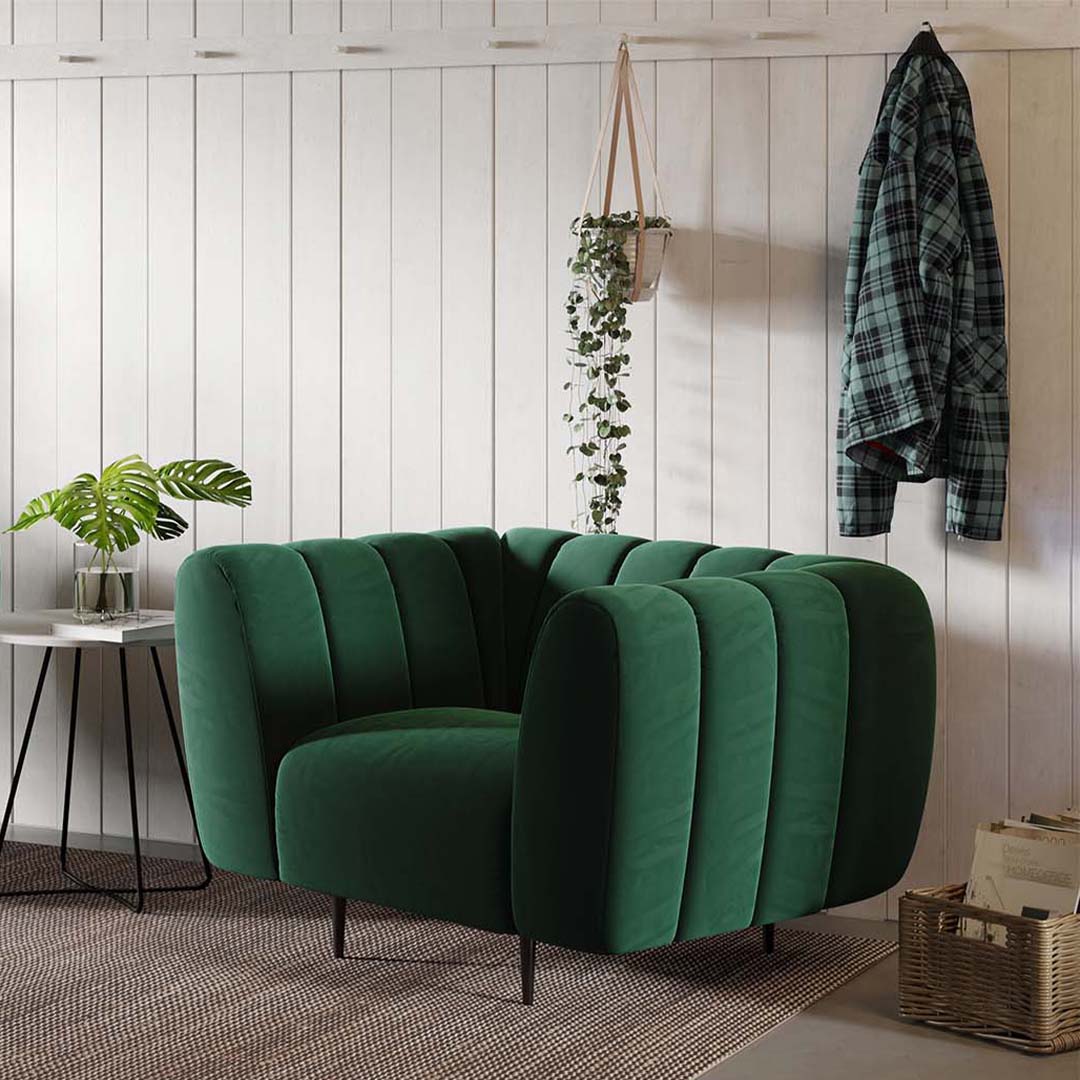 Shel is a fancy sofa that stands out thanks to the vertical tufting in the back and armrests while thin metal legs contrast with a comfy massive seat. Ghado fabric selection goes well with simple scandi interiors but at the same time, glamour velvets make it a perfect sofa for elegant designs.