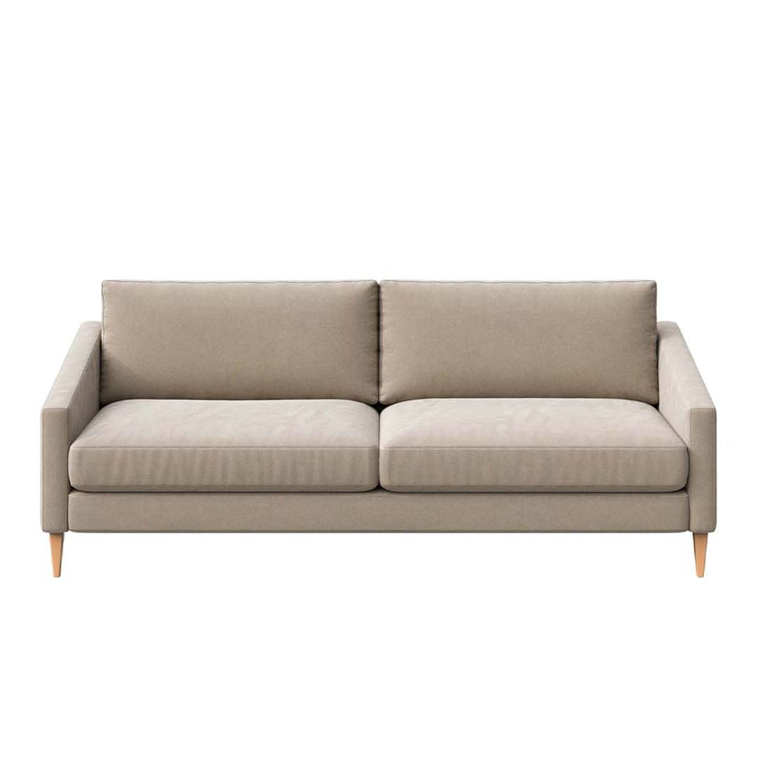 KAROTO collection offers an armchair, a two-seater sofa, a three-seater sofa, and a corner sofa. All the furniture in the collection is characterized by an elegant, symmetrical form, referring to the style of the 60s/70s. A distinctive feature of the set is its chamfered down armrests. The sofa's wooden legs are in the form of angled, downward-cut posts, which visually slim down the furniture. In addition, the seat and backrest area, divided into two parts, refers to the doubled form of the base and seat cushions. The simple, minimalist form of the furniture means that with the help of well-chosen materials, it will find its use in any style interior. KAROTO sofa highlights all the features of the collection, which are minimalism and symmetry in a modern interpretation of retro-style furniture.