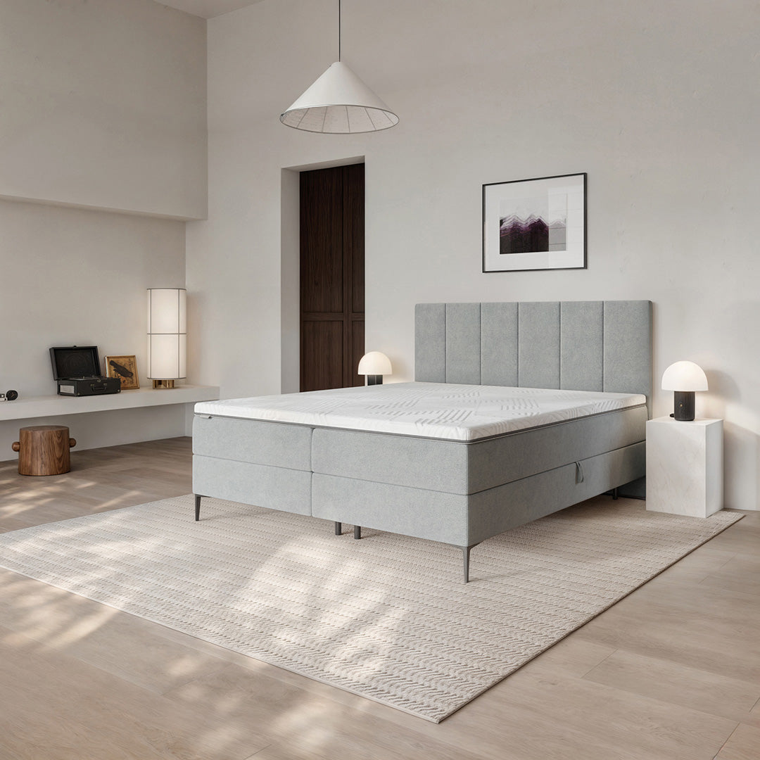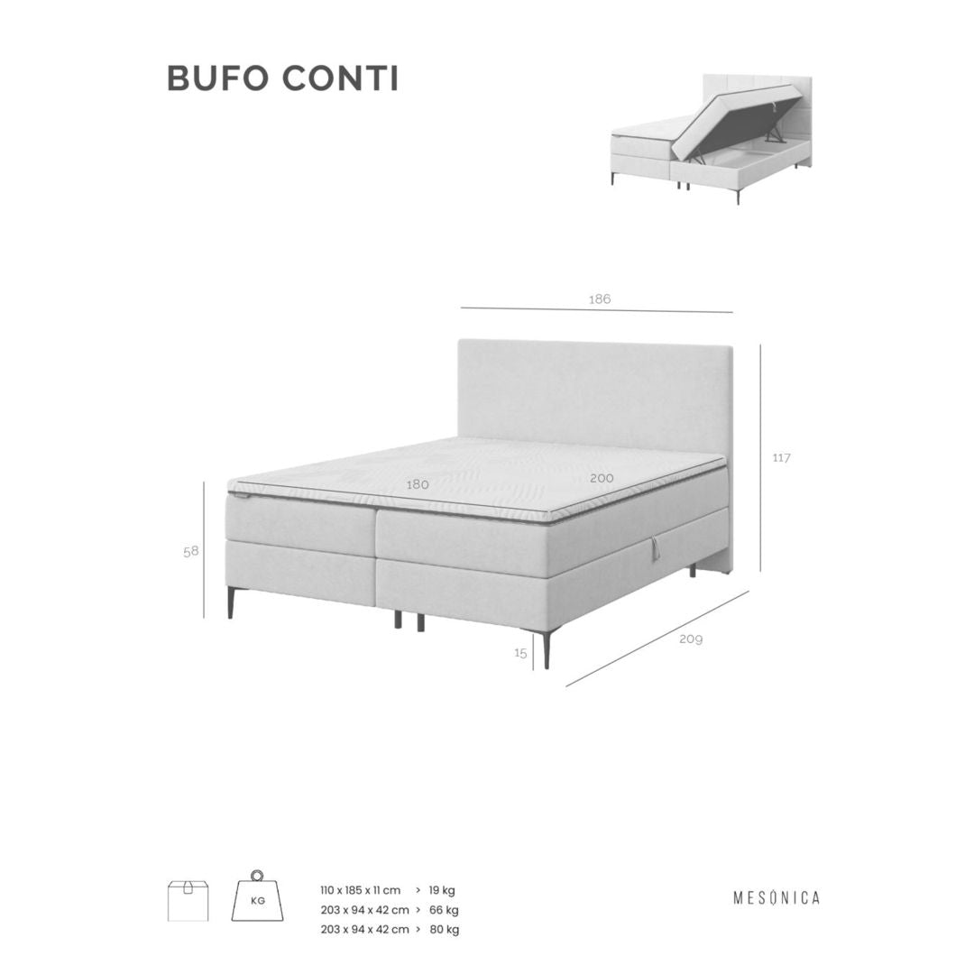 Le lit Bufo Continental, avec sa tête de lit massive, sa forme fonctionnelle et ses composants de haute qualité, vous promet un sommeil réparateur. Après les efforts du quotidien, votre colonne vertébrale a besoin de se ressourcer. C'est pourquoi le Bufo Continental est équipé d'un matelas à ressorts intégré qui vous offrira un confort optimal. Les collections de matelas Mesonica répondent à notre engagement en matière de design haut de gamme et de qualité. Notre objectif était de créer le matelas parfait, sans compromis, car il est essentiel à votre sommeil et à votre santé globale. Nous garantissons confort et durabilité, pour que vous puissiez profiter longtemps des produits Mesonica de qualité supérieure.