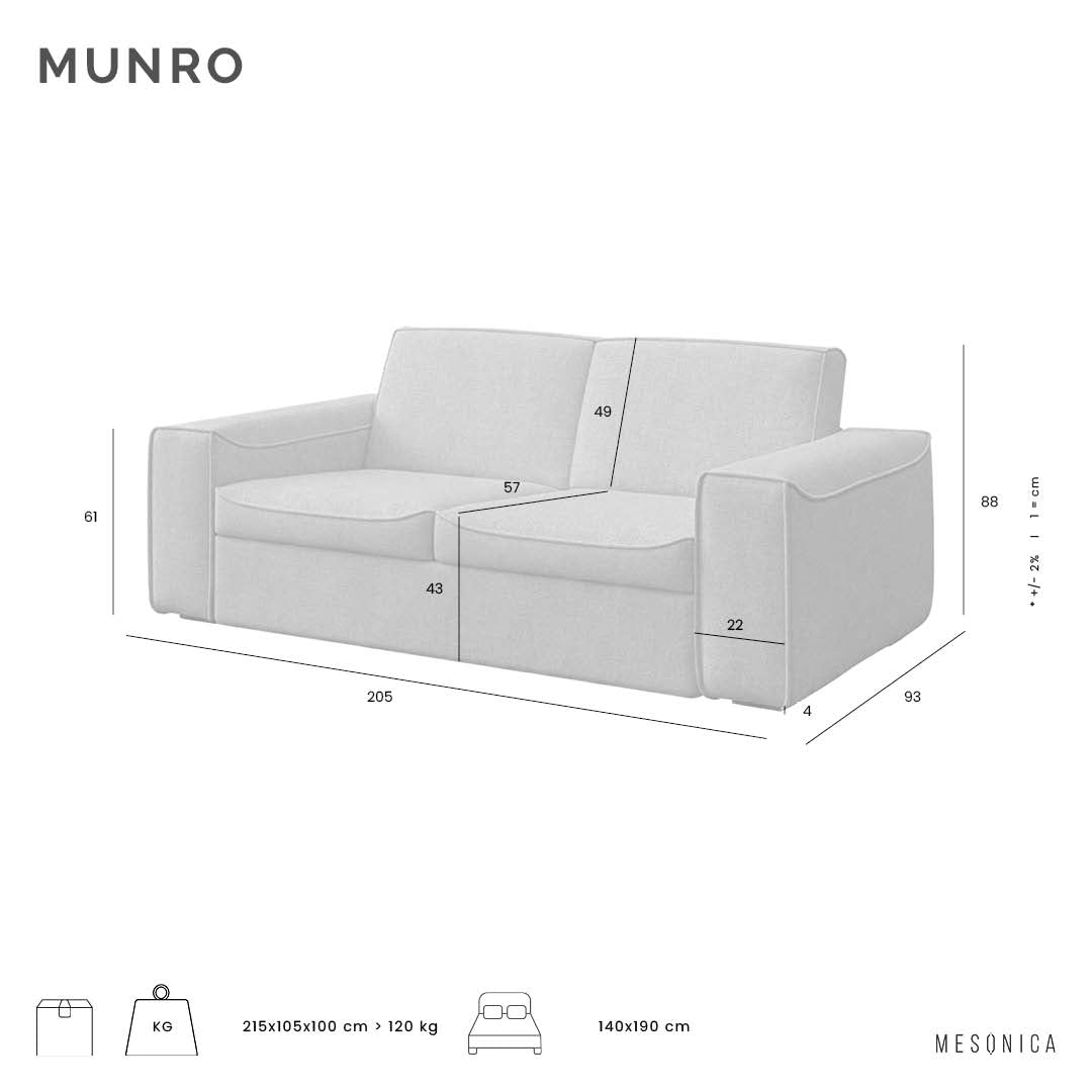 Munro is the first convertible sofa in Mesonica collection. We wanted to create a perfect combination of charm and utility by adding a comfortable sleeping mattress to an elegant sofa. This convenience allows you to change your sofa easily into a living bed - practical solution when you have guests staying overnight or for small apartments. Mesonica products are made only from high-end elements and quality fabrics, no different is Munro which holds an Italian mechanism giving you a light touch opening and closing every day. Munro sofa is finished with solid wooden legs and a thick stitching over the edges enhancing its modernistic look.