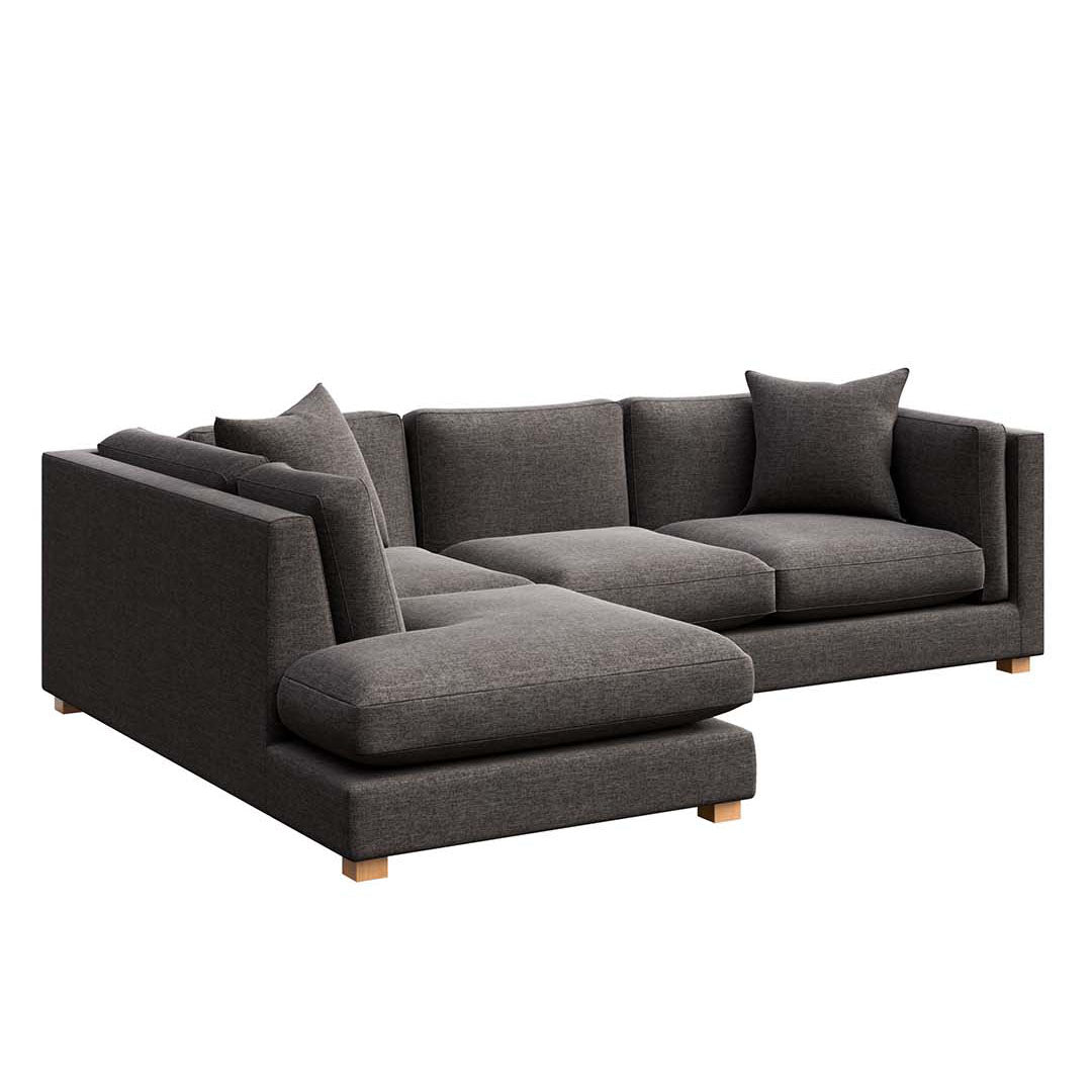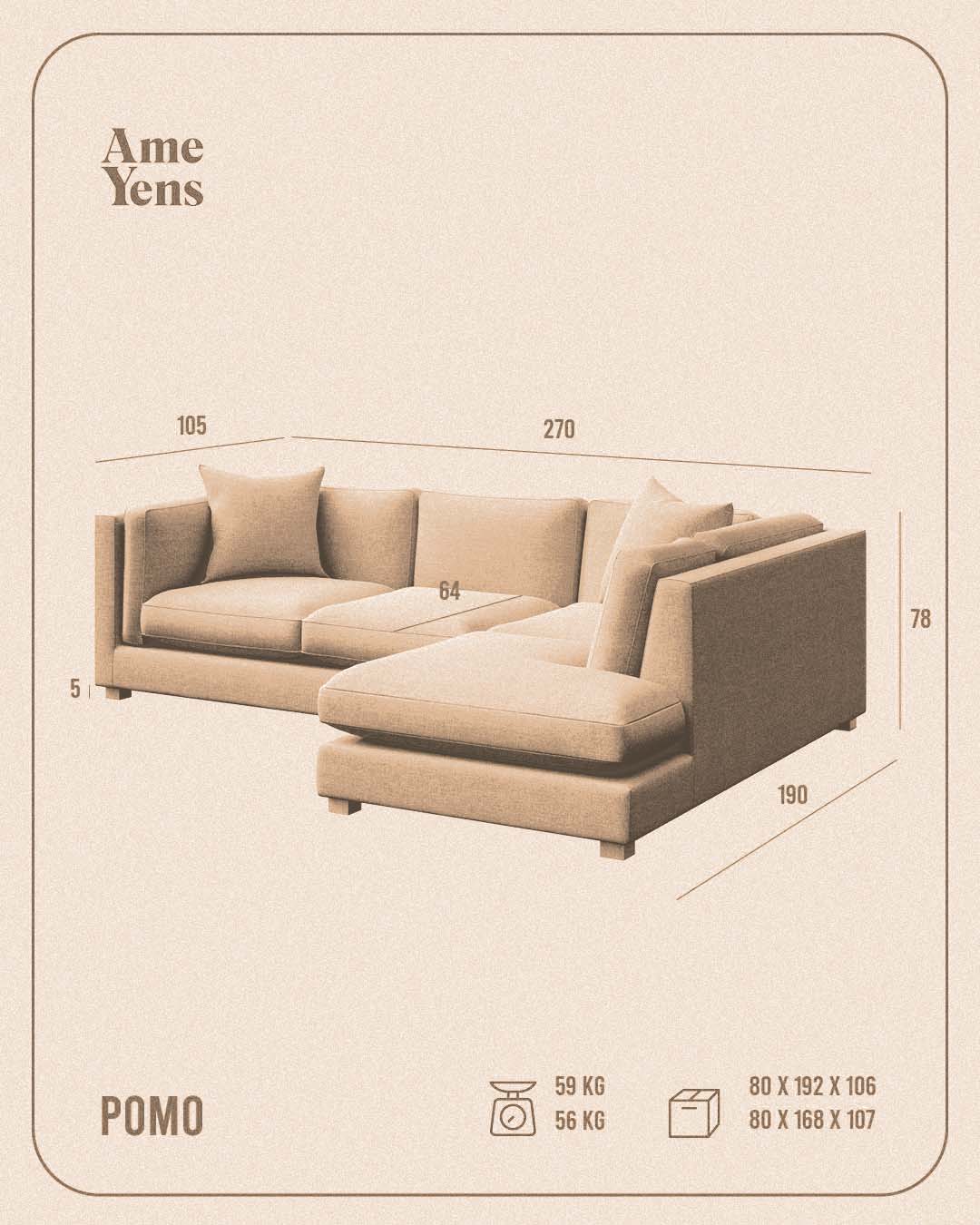 POMO collection has sofas that are the personification of comfort. All this is due to the highly soft foams used in the seat part. The cozy seat gives users the sensation of sinking into the sofa. Thanks to this, sofas from the POMO collection perfectly meet the needs of users looking for comfort and relaxation. Thick cushions enrich the simple body of the furniture by adding an unobvious element of roundness. Additional cushions used in the part of the backrest enhance the feeling of wrapping and softness. POMO corner sofa with its form refers to all from the collection. Being a complement to the collection, the furniture is possible to order in both rights and left orientations.