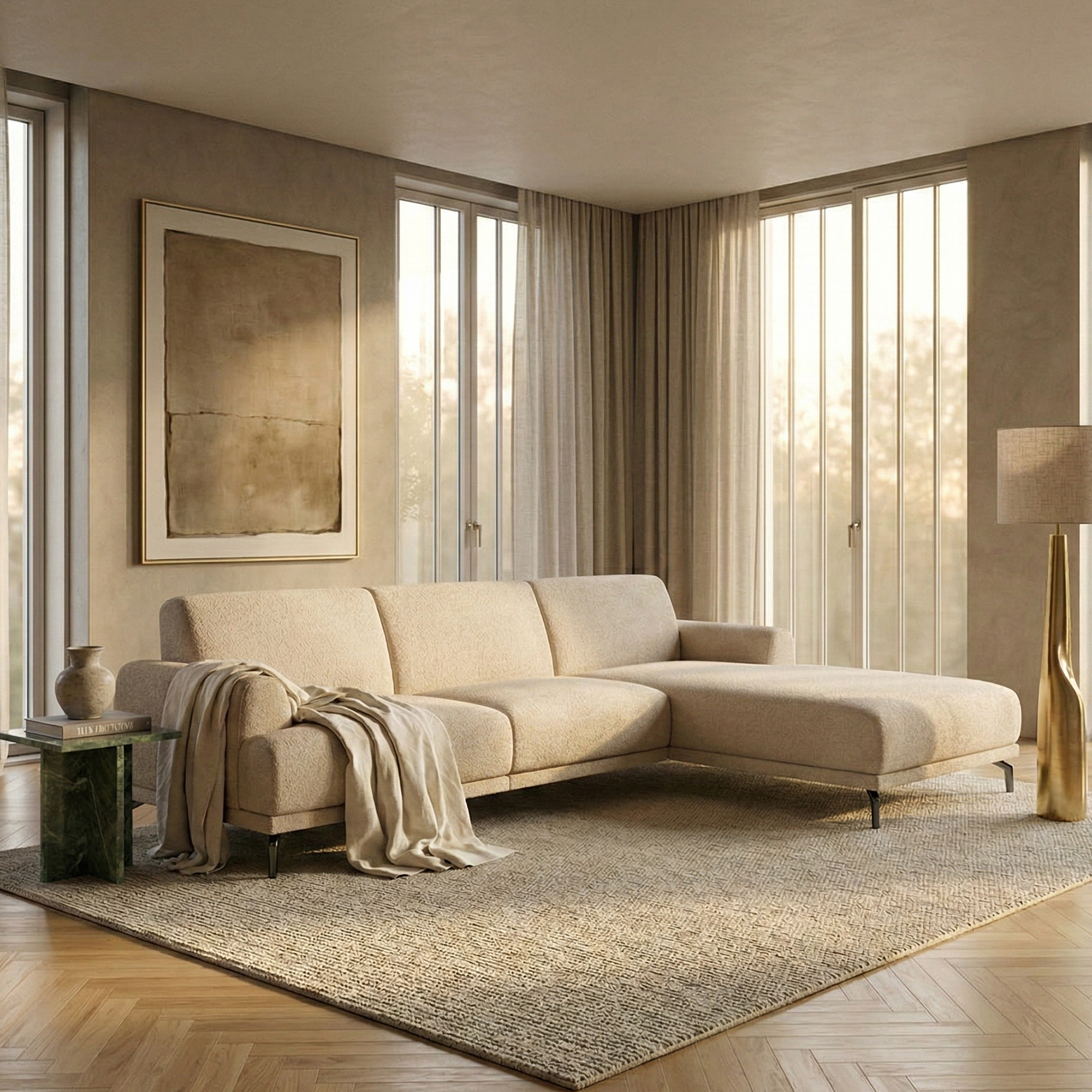 Sofa narożna prawostronna Puzo beżowa boucle marki Mesonica