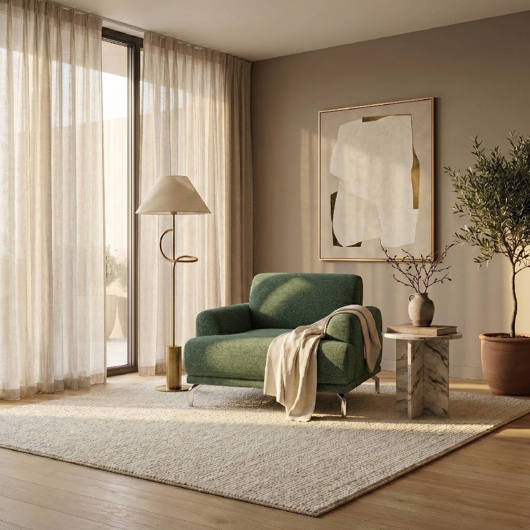 Please note that images and visualizations are digitally rendered and may appear differently depending on your device's screen settings. The actual fabric texture and color may vary in person. We highly recommend ordering our free samples for full peace of mind.
