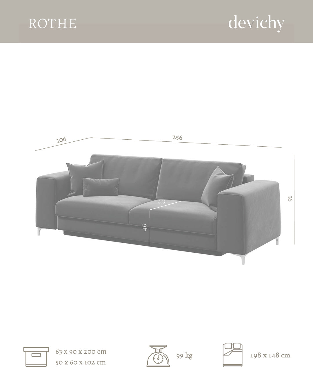 Rothe modern sofa has a simple structure. Its form and functionality will satisfy the needs of even the most demanding interior. You can easily transform it into a comfortable bed. A representative and exclusive look perfectly combines comfort and style.