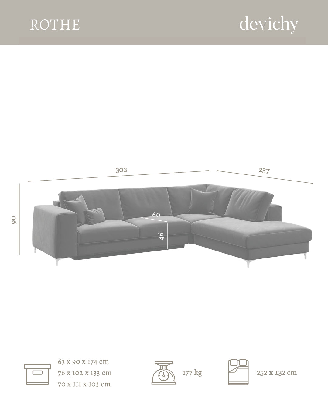 Rothe modern sofa has a simple structure. Its form and functionality will satisfy the needs of even the most demanding interior. You can easily transform it into a comfortable bed. A representative and exclusive look perfectly combines comfort and style