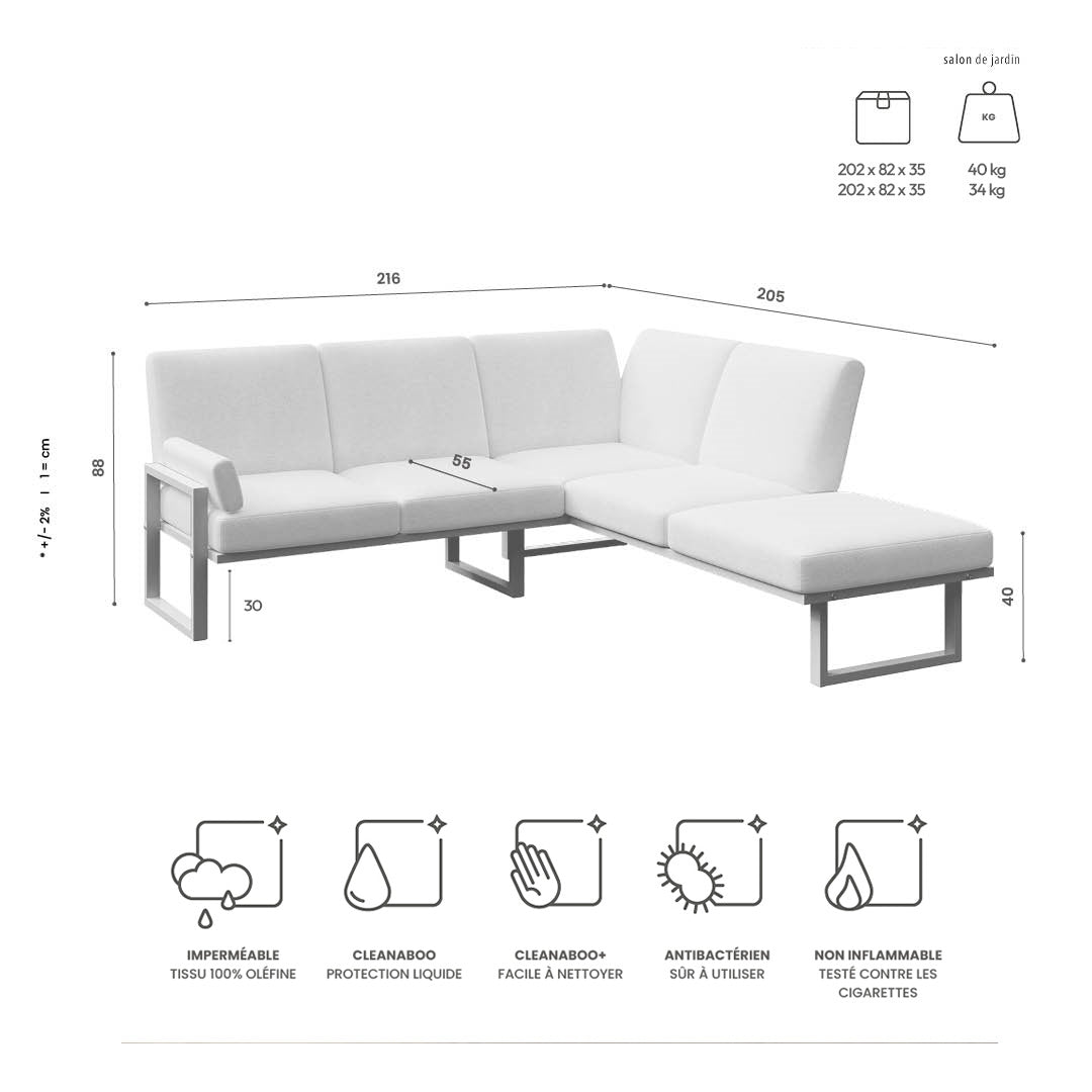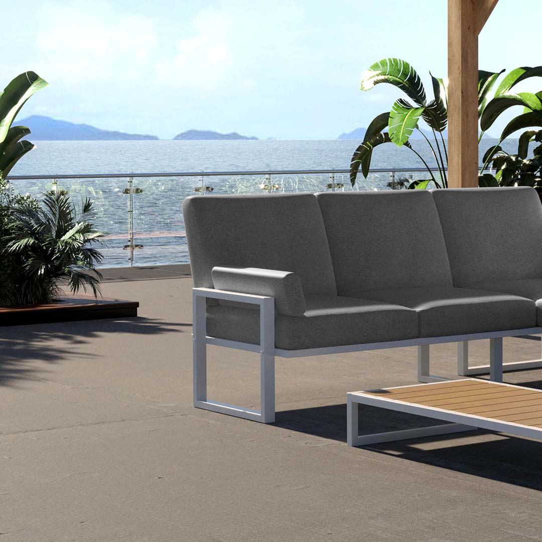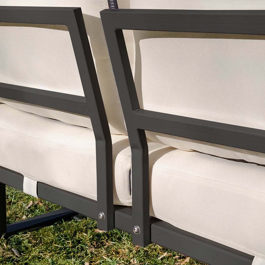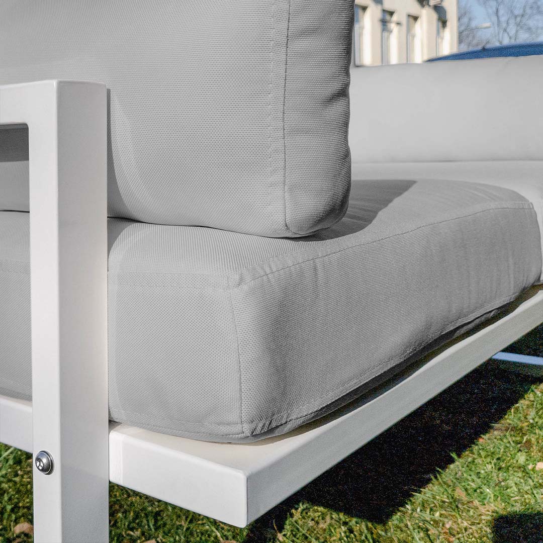 With Soledo sofa, outdoor relaxation is taken to a whole new level. The sofa's design ensures comfort for all, and its versatile usage makes it a great addition to any outdoor space. Whether you're soaking up the sun or simply enjoying quality time with friends and family, Soledo sofa provides the perfect setting. Upgrade your outdoor experience with Soledo sofa.The durable, resistant steel frame is available in timeless hues of white and anthracite, and the waterproof, stain-resistant olefin fabric comes two color pallets. The first one offers muted, classic colors, and the second one offers vibrant and eye-catching options to add a pop of color to your outdoor space.