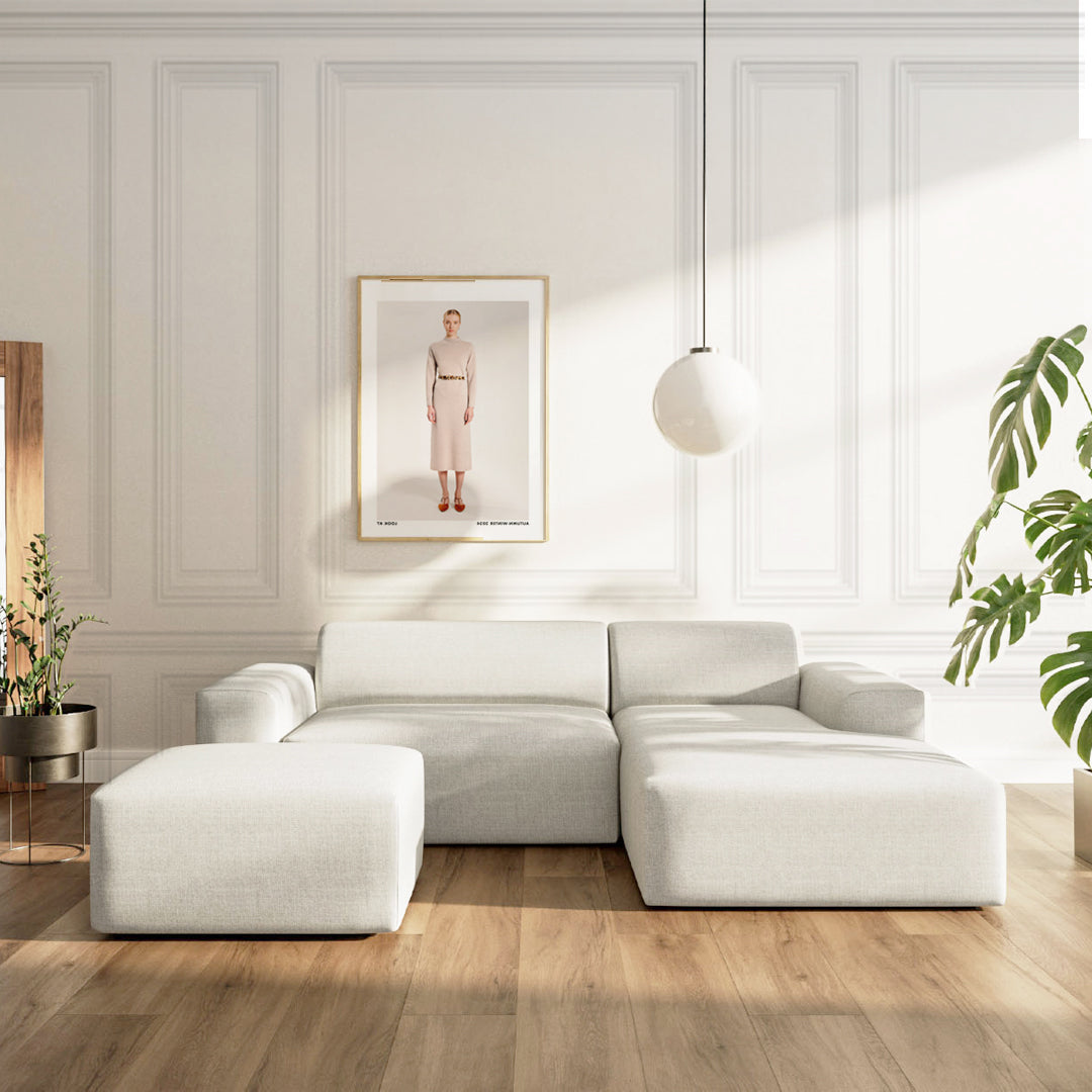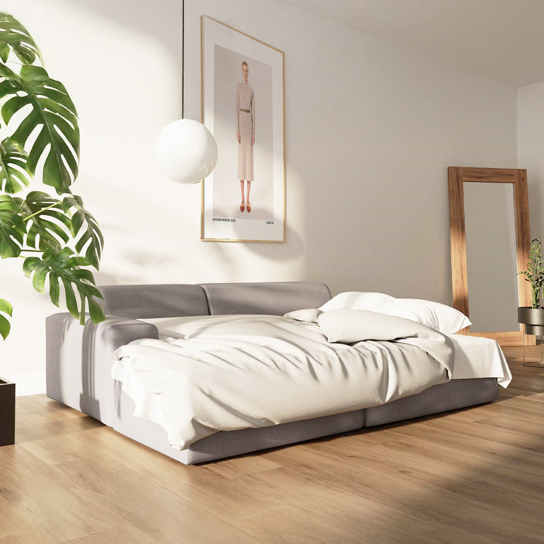 The Villet sofa from Rodier timeless collection has ability to transform into a comfortable bed for two is a significant advantage. The transformation process is straightforward, requiring only a few simple steps. Additionally, the sofa ottoman features a storage box for bedding, adding to its functionality.The Villet sofa's elegant design and neutral color options not only ensure easy integration with any interior decor, but also make it a sophisticated, functional, and practical piece of furniture for any living space.