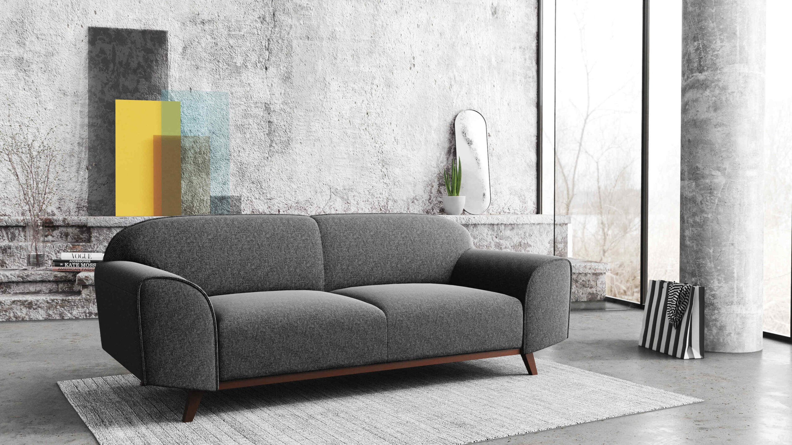 Modern 2,5 seater-sofa with a unique form, emphasized with perfect trimming is an absolute marvel. Gentle curves and soft form of Nesbo sofa are an extremely nice example of elegance, the unique look and rounded details of Nesbo will give your salon a touch of pleasure and create a friendly atmosphere. This comfortable sofa has a wide seat that provides additional convenience. Nesbo sofa is available in a wide range of high-quality color fabrics and leathers. An original form of Nesbo sofa is emphasized with frame and legs made from natural wood.